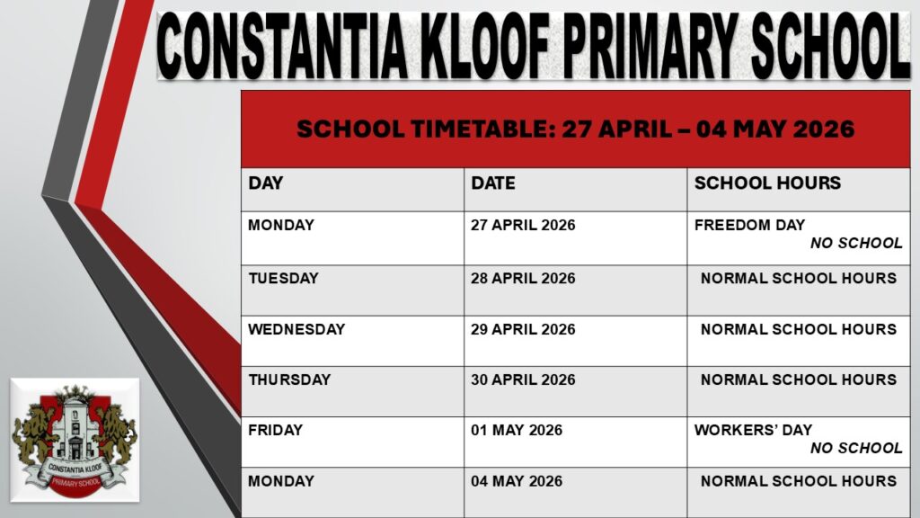 School hours – 27 April 2026 to 4 May 2026